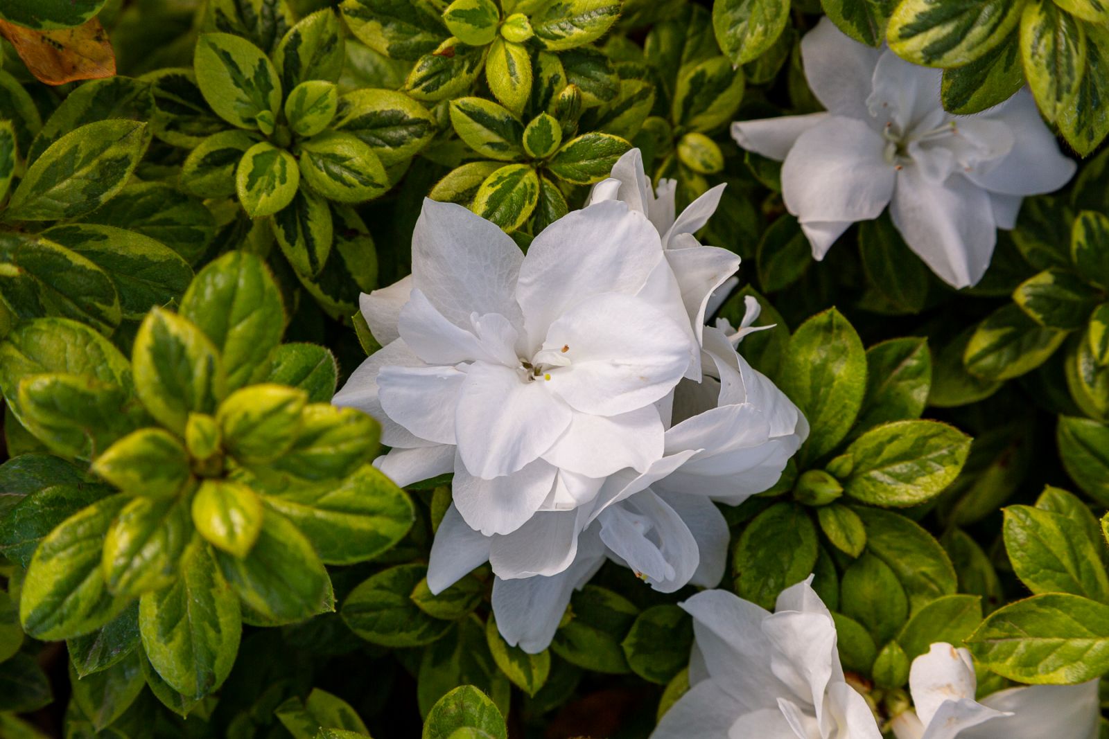 Questa Azalea fiorisce due volte all'anno a differenza delle Azalee tradizionali. Ma oltre a queste splendide fioriture multiple bianco candido, avrai a disposizione un coloratissimo fogliame variegato! Fioriture ripeture e foglie colorate formano dunque un mix insostituibile negli spazi all'aperto. Tutte le Azalee Encore® prediligono un'ombra parziale e sono utilizzabili in qualsiasi tipo di terreno, non solo in quello molto acido.  Se il caldo e la luce non mancano, possono persino fiorire una terza volta in estate!