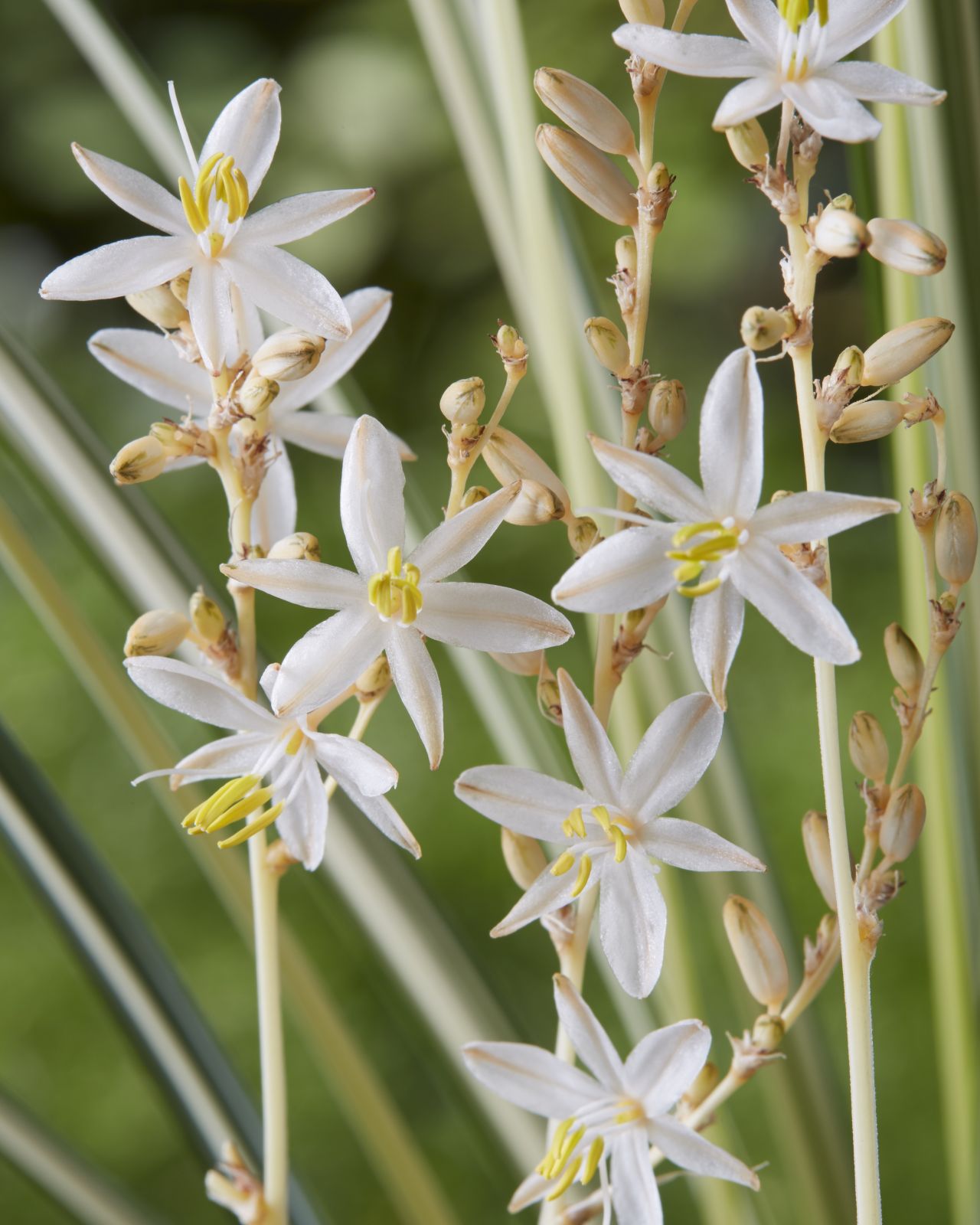 Che effetto scenico incredibile!!! Il fogliame di 'Starlight' è variegato di bianco e risulta così davvero luminoso per gli ambienti che lo ospitano, inoltre è eretto e sottile e questo conferisce alla pianta una bella forma architettonica slanciata. Potrebbe anche bastare, se non fosse che nella seconda metà dell'estate appaiono i piccoli fiori: la loro caratteristica è di sembrare letteralmente una nuvola di stelle scintillanti.