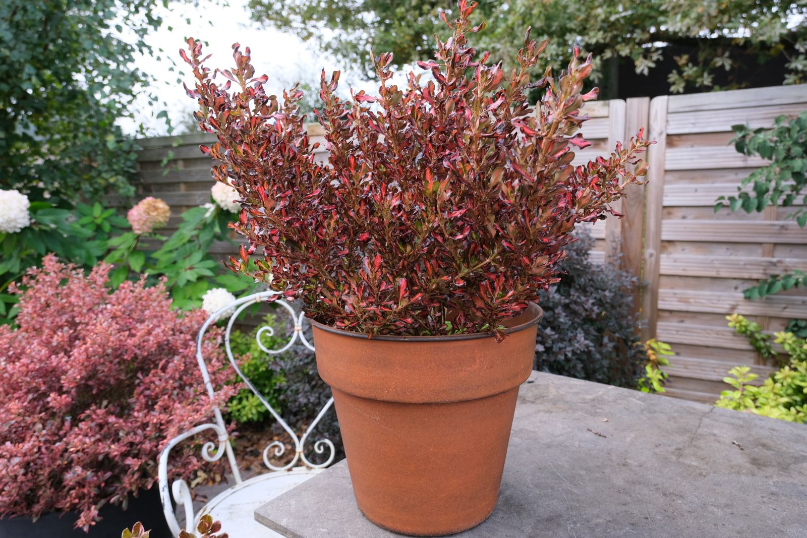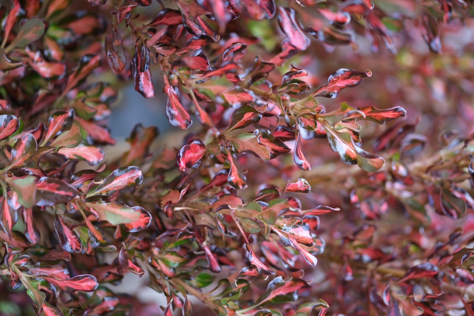 Il suo fogliame brillante offre colori cangianti tutto l'anno, grazie alla prevalenza del rosso cremisi! Le Coprosma della serie Fusion sono piante essenziali per la decorazione vegetale. Facili da coltivare in vaso, forniscono un fogliame colorato che ben accompagna le fioriture stagionali delle altre piante. 'Pacific Sunset' ha una combinazione unica di colori rosa, rosso cremisi e cioccolato che cambia continuamente in base alla temperatura. I colori cioccolato e rosa sono più scuri in autunno e inverno e più chiari in estate.