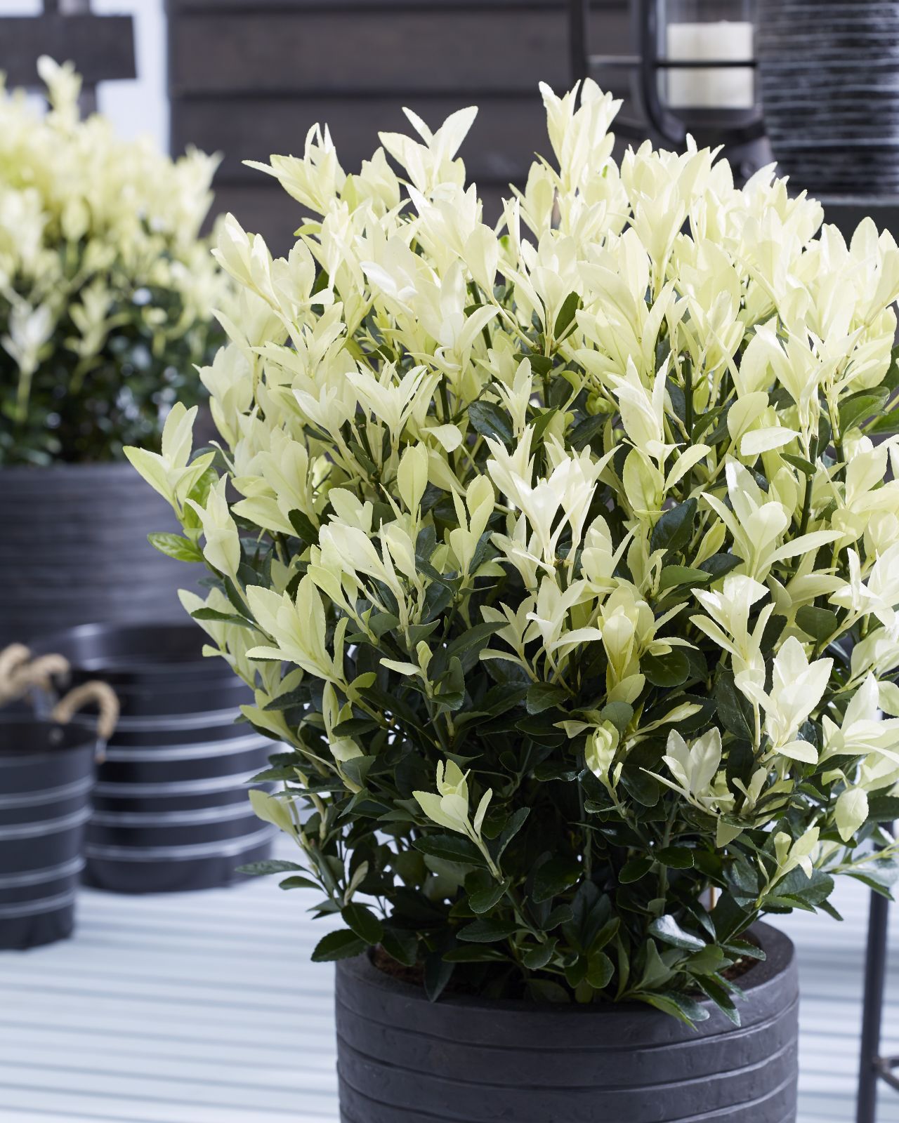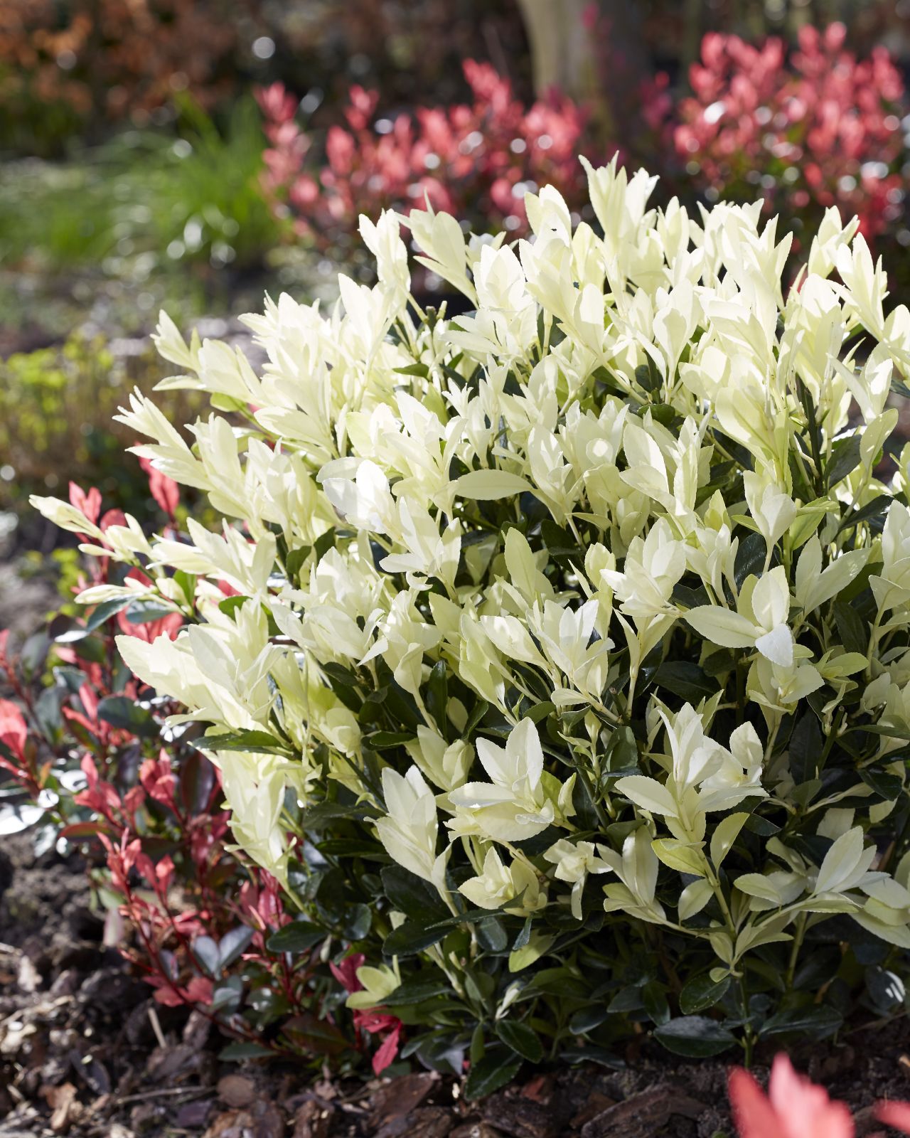 Di Euonymus ce ne sono tanti, ma davvero pochi sono come "Himalaya". Questa varietà è una meravigliosa scoperta per gli amanti delle piante sempreverdi. Questo arbusto infatti è un vero spettacolo della natura: tutti i nuovi germogli nascono con una livrea bianca come la neve e le loro imponenti dimensioni completano questa manifestazione di bellezza. Poi gradualmente virano verso il colore verde originale. "Himalaya" cresce senza diventare mai invadente, con una vegetazione densa e compatta. È perfetta come pianta da terrazzo in vaso o in giardino ma è anche molto adatta per siepi basse. Mai vista una pianta in cui le foglie sembrano fiori !