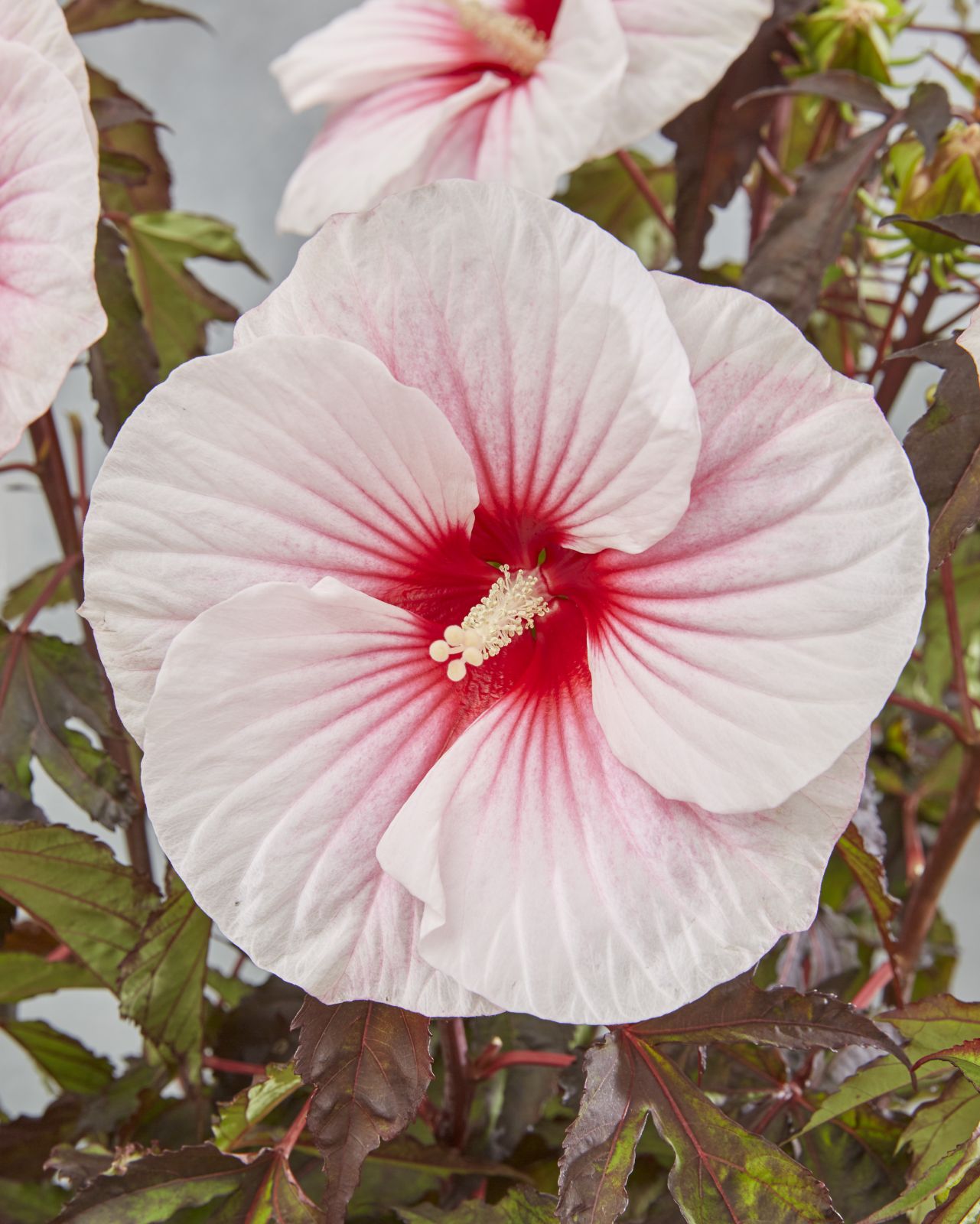 La serie Hibiscus Carousel® è caratterizzata da un portamento cespuglioso,  da foglie profondamente incise e scure, dalla facilità di manutenzione e dalla ricca fioritura con fiori giganteschi. Il diametro del fiore arriva fino a 15-18 cm e assicura un effetto scenografico strabiliante.