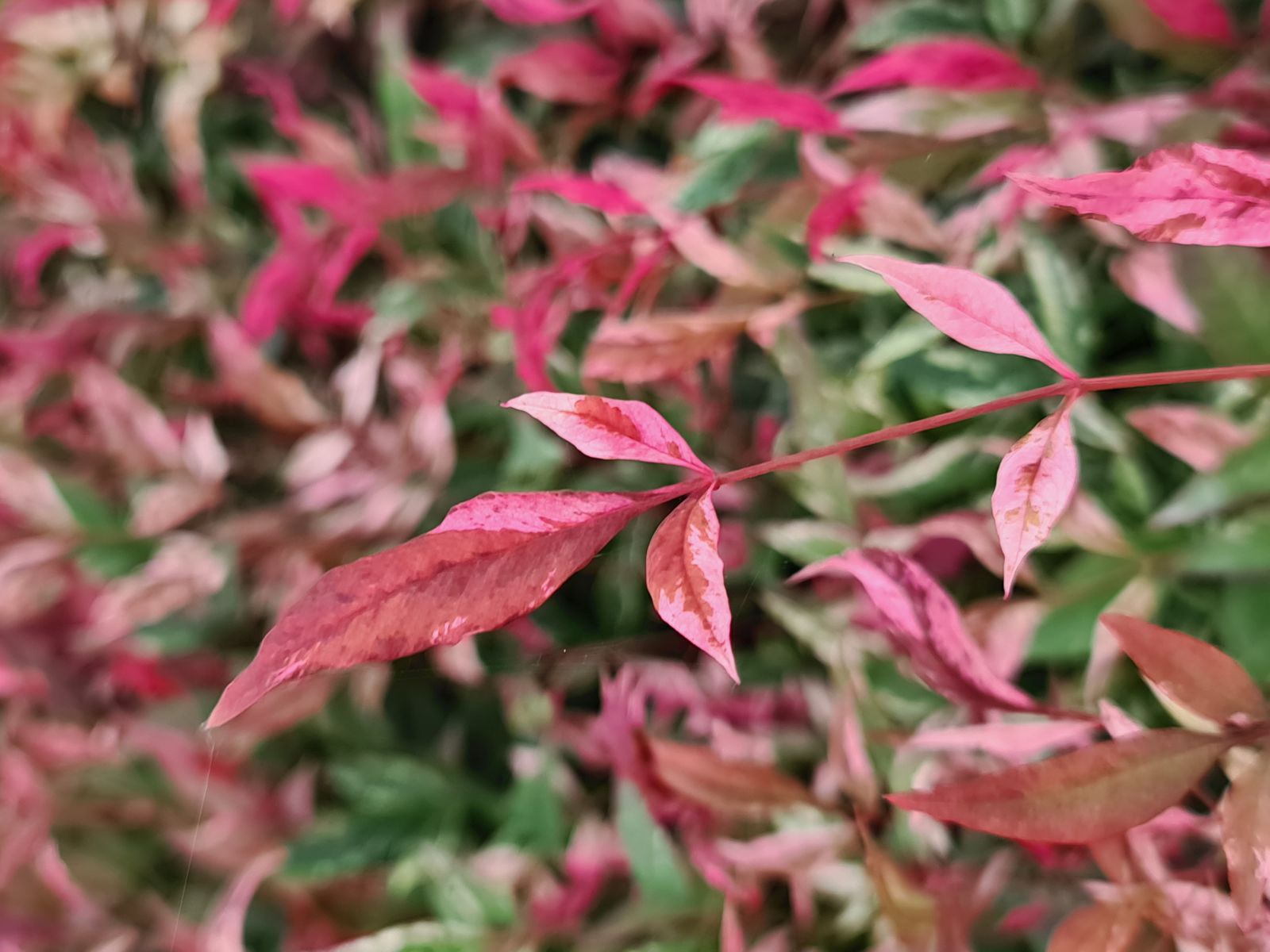 Nandina 'Redlight' ha un aspetto leggero come quello di un piccolo bambù in miniatura. Sulla pianta possono apparire contemporaneamente foglioline verdi variegate di bianco crema e foglioline dall'intenso colore rosso carico. L'effetto d'insieme è straordinario! La pianta è sempreverde, molto resistente al freddo e al caldo.