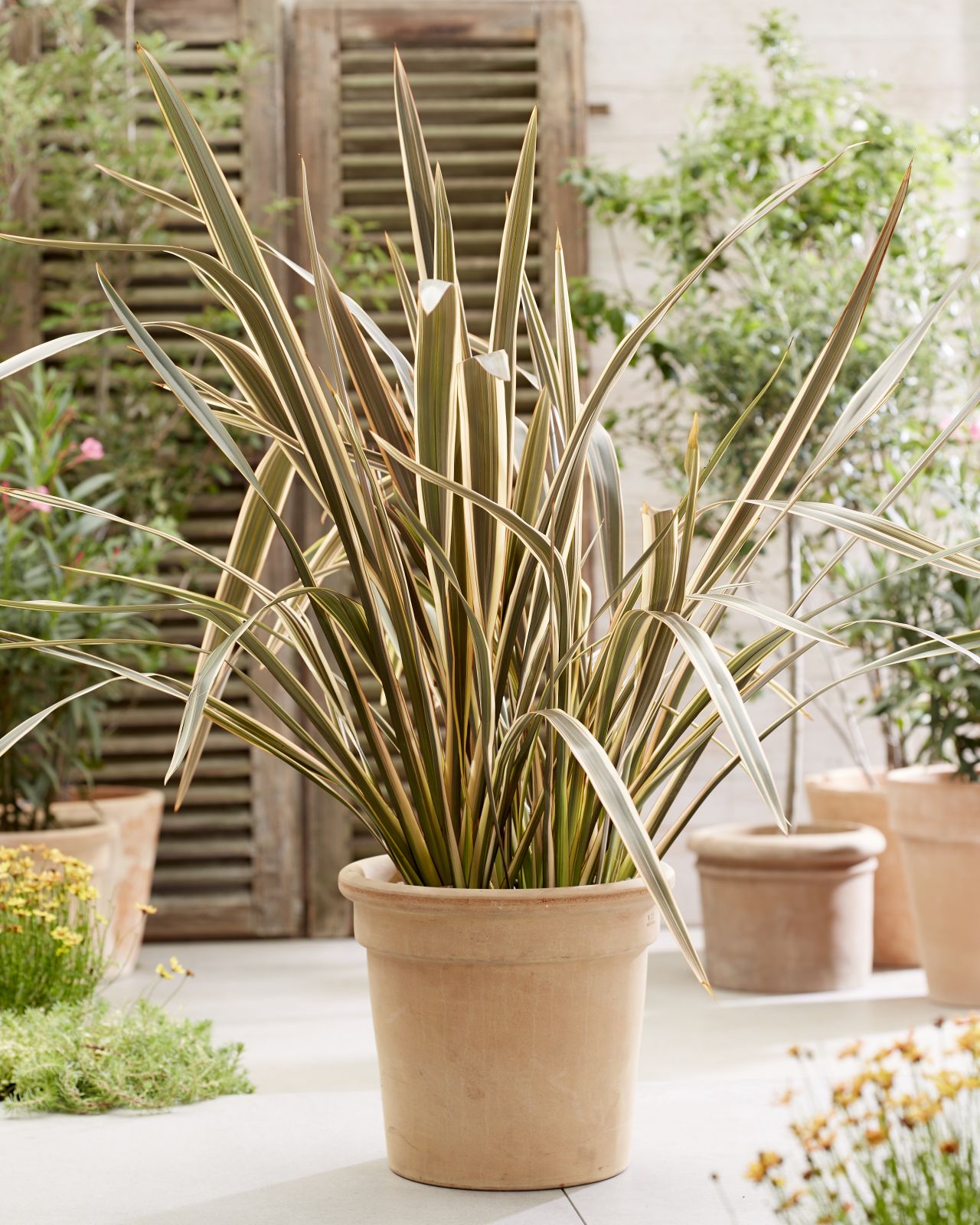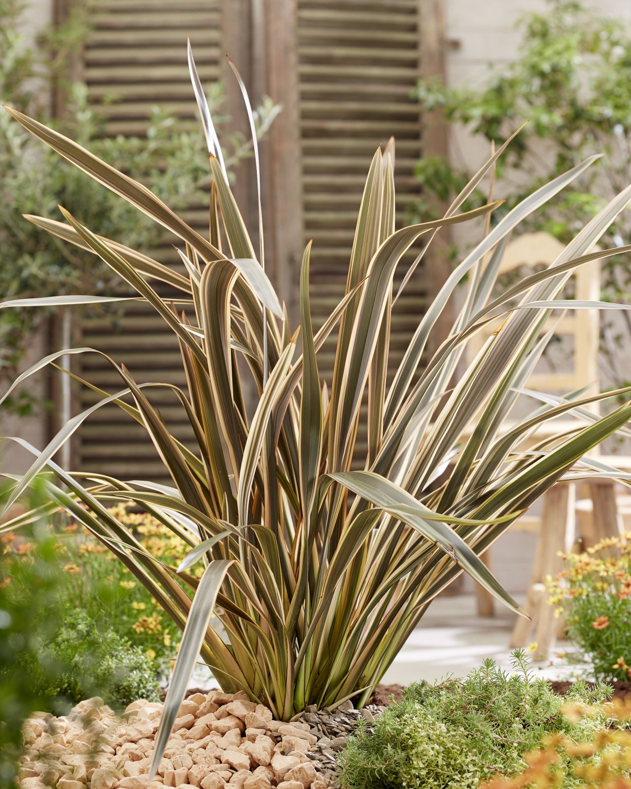 Come suggerisce il nome, questo Phormium "Zucchero di Canna" possiede una dolcezza tutta particolare!  Le sue lunghe foglie a spatola, leggermente arcuate alle estremità, sembrano delle spade erette e sono solcate per tutta la loro lunghezza da bande proprio del colore dello zucchero di canna: un marrone caldo e moderno. Ma ti piaceranno anche i bordi che sono di un piacevole color crema e arancione brillante. Trovare piante così originali e colorate è sempre un'impresa rara. Vuoi attirare l'attenzione con un giardino superbo? Utilizza "Brown Sugar" in giardino o in vaso e tutti si volteranno ad osservarlo. Ricorda solo di fornirgli un po' di riparo invernale, per il resto non ti darà preoccupazioni!